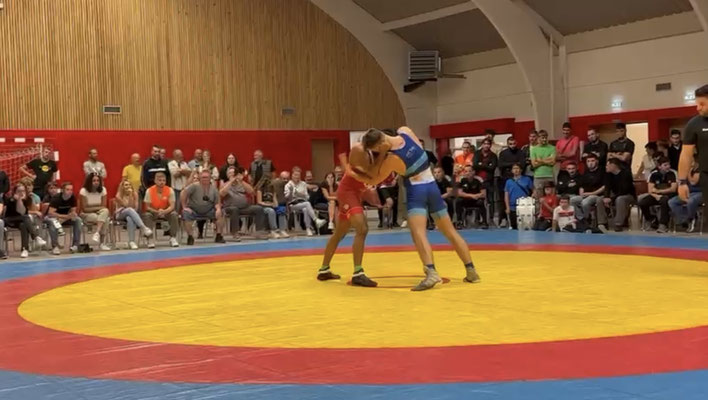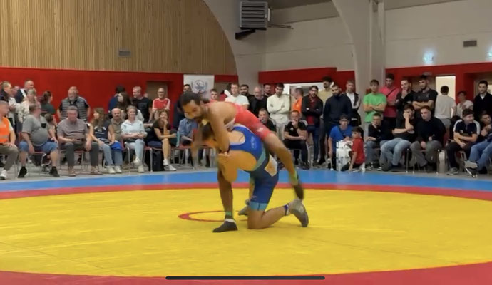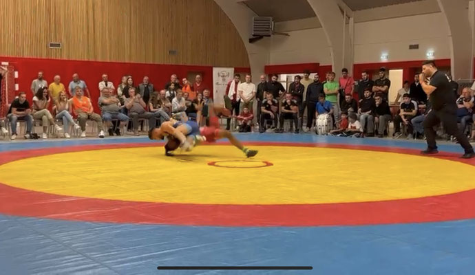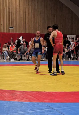 75 kg: Levin Özkaya zeigte wieder, dass er dieses Jahr schwer zu besiegen ist und gewann gegen den mehrfachen französischen Meister Yann Maia José hoch mit 13:4.
